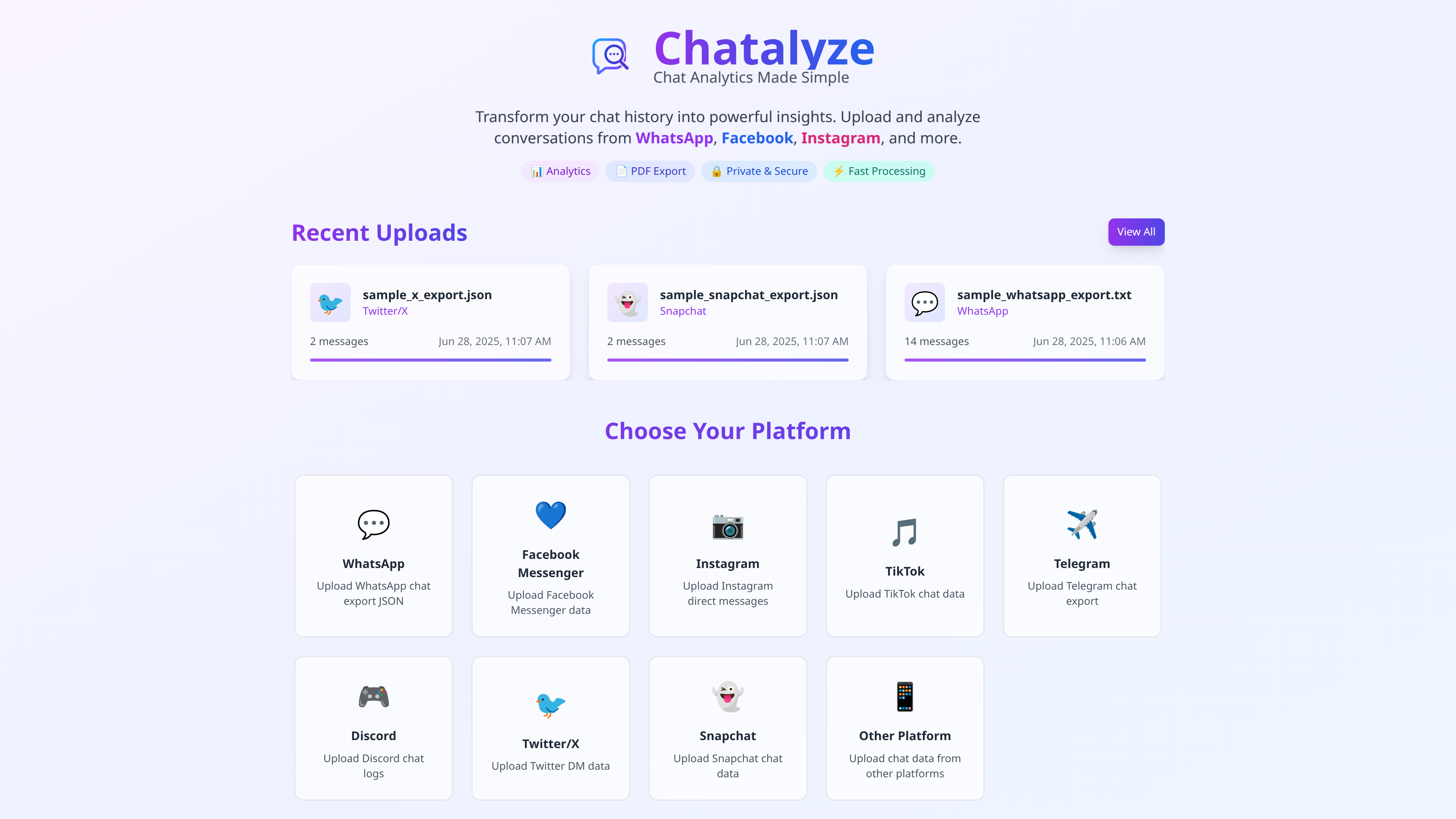 Chatalyze is a privacy-first, browser-based chat analytics tool that transforms exported messaging data into...